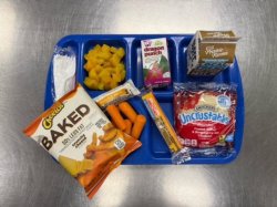 - Breakfast: Tortilla Wrapped Omelet, Milk, Juice Lunch: PBJ Uncrustable, String Cheese, Cheetos, Carrots, Dragon Punch, Peaches, Milk