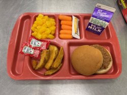 Breakfast: Mini Pancake Wraps, Fruit, Milk, Juice Lunch: Sloppy Joe/Bun, Potato Wedges, Carrots, Peaches, Milk