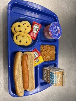 Breakfast: Breakfast Burrito, Fruit, Milk, Juice Lunch: hotdog, Smile Fries, Green Beans, Apple, Milk
