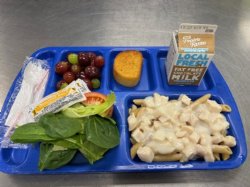 - Breakfast: Granola, Yogurt, Fruit, Milk, Juice Lunch: Chicken Alfredo, Garlic Toast, Romaine, Tomato Wedge, Applesauce Cup, Milk