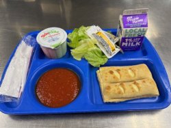 - Breakfast: Cereal, Cheese Stick, Fruit, Milk, Juice Lunch: Italian Dunkers, Marinara, Romaine, Carrots, Strawberry Cup, Milk
