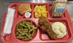 - Breakfast: Muffin, Cottage Cheese, Fruit Milk, Juice Lunch: Chicken Drumstick, Dinner Roll, Mashed Potatoes, Green Beans, Mixed Fruit, Milk
