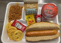 - Breakfast: Cereal, Cheese Stick, Fruit, Milk, Juice Lunch: Hot Dog/Bun, Smile Fries, Baked Beans, Strawberry Cup, Milk