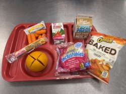 - Breakfast: Mini Bagel, Fruit, Milk, Juice Lunch: PBJ Uncrustable, String Cheese, Cheetos, Carrots, Dragon Punch, Peaches, Milk